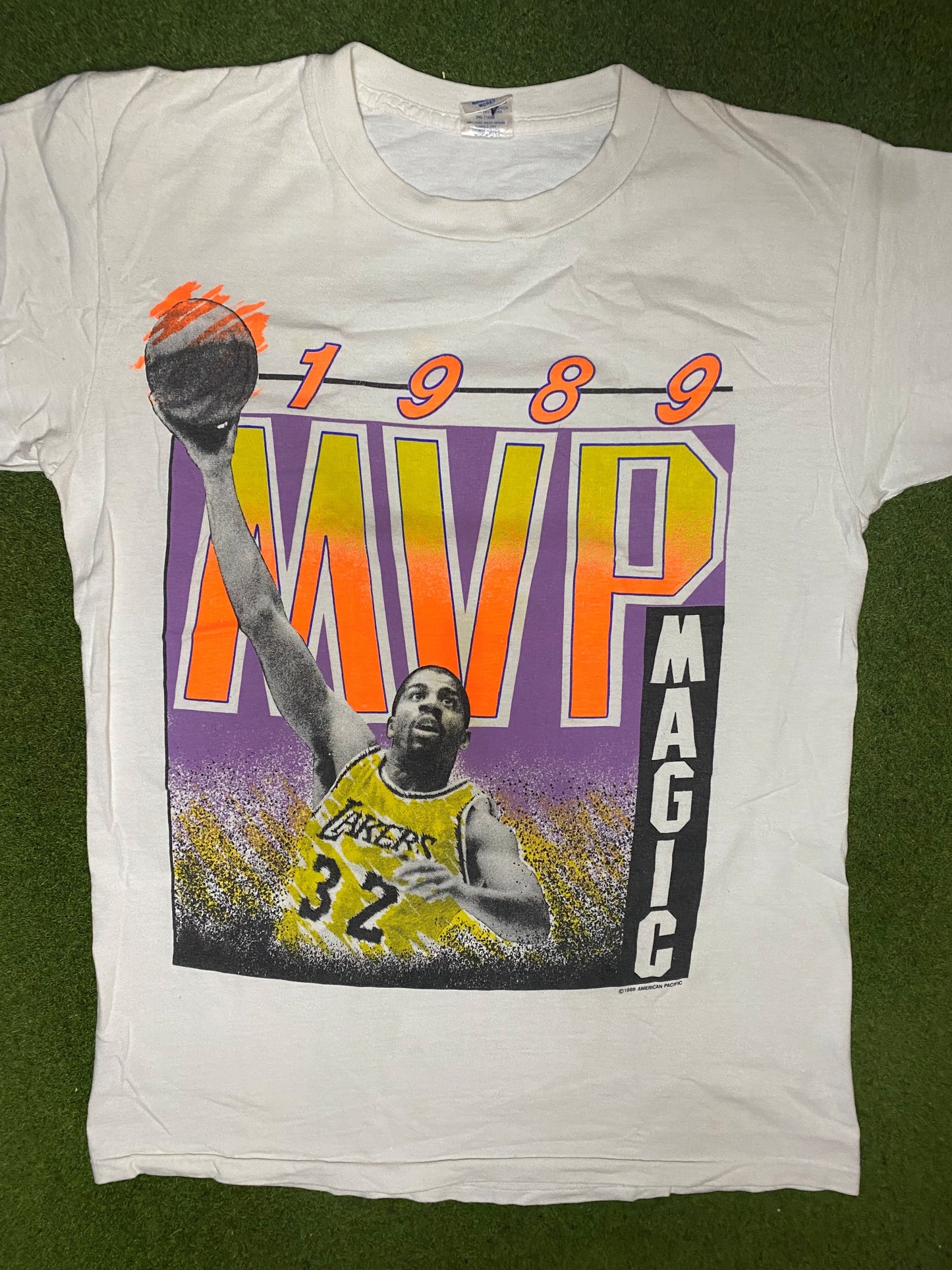 1989 Los Angeles Lakers - Magic Johnson MVP - Vintage NBA Player T-Shirt (Large)