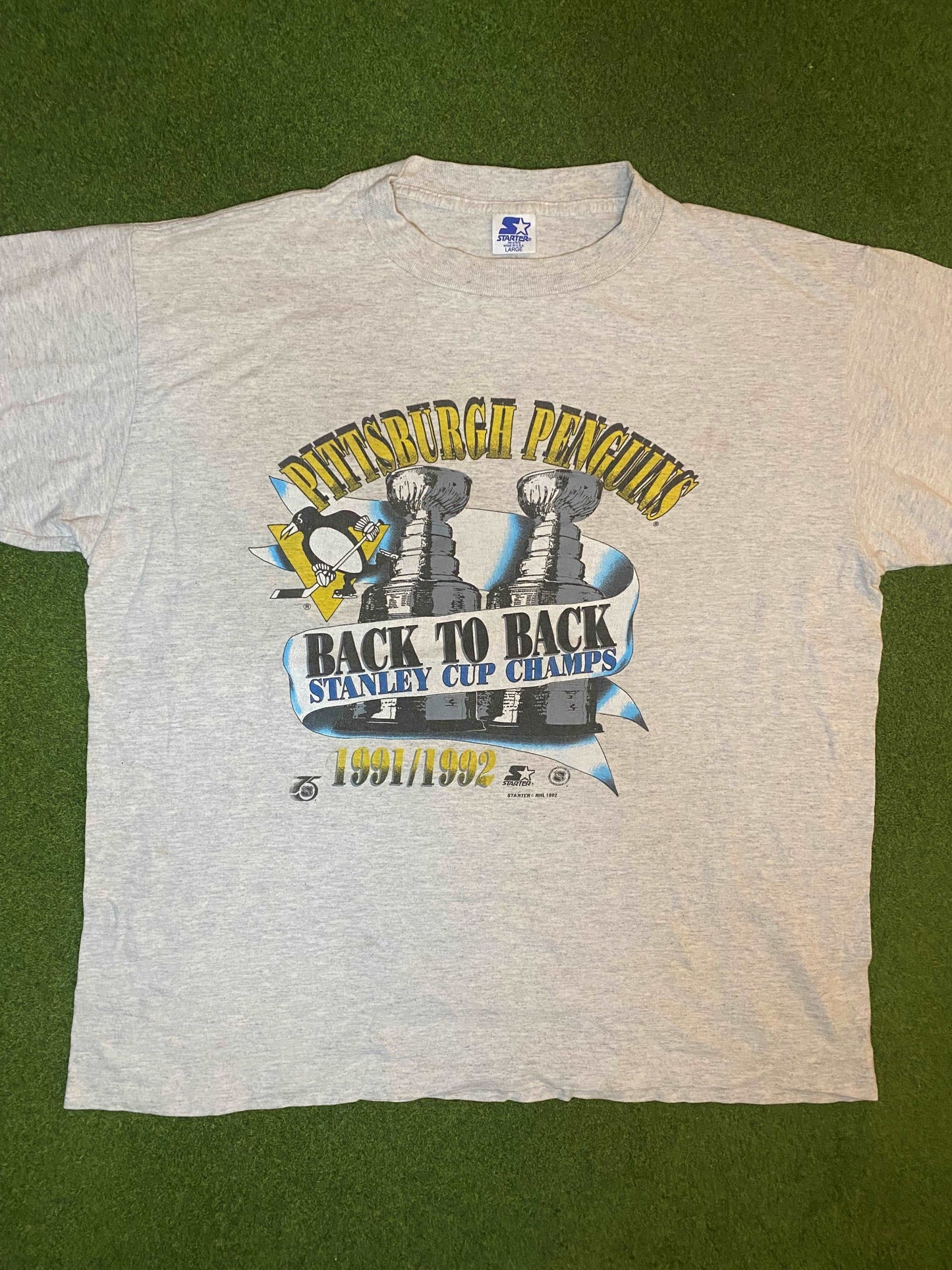 1992 Pittsburgh Penguins - Back to Back Stanley Cup Champs - Vintage NHL T-Shirt (Large)