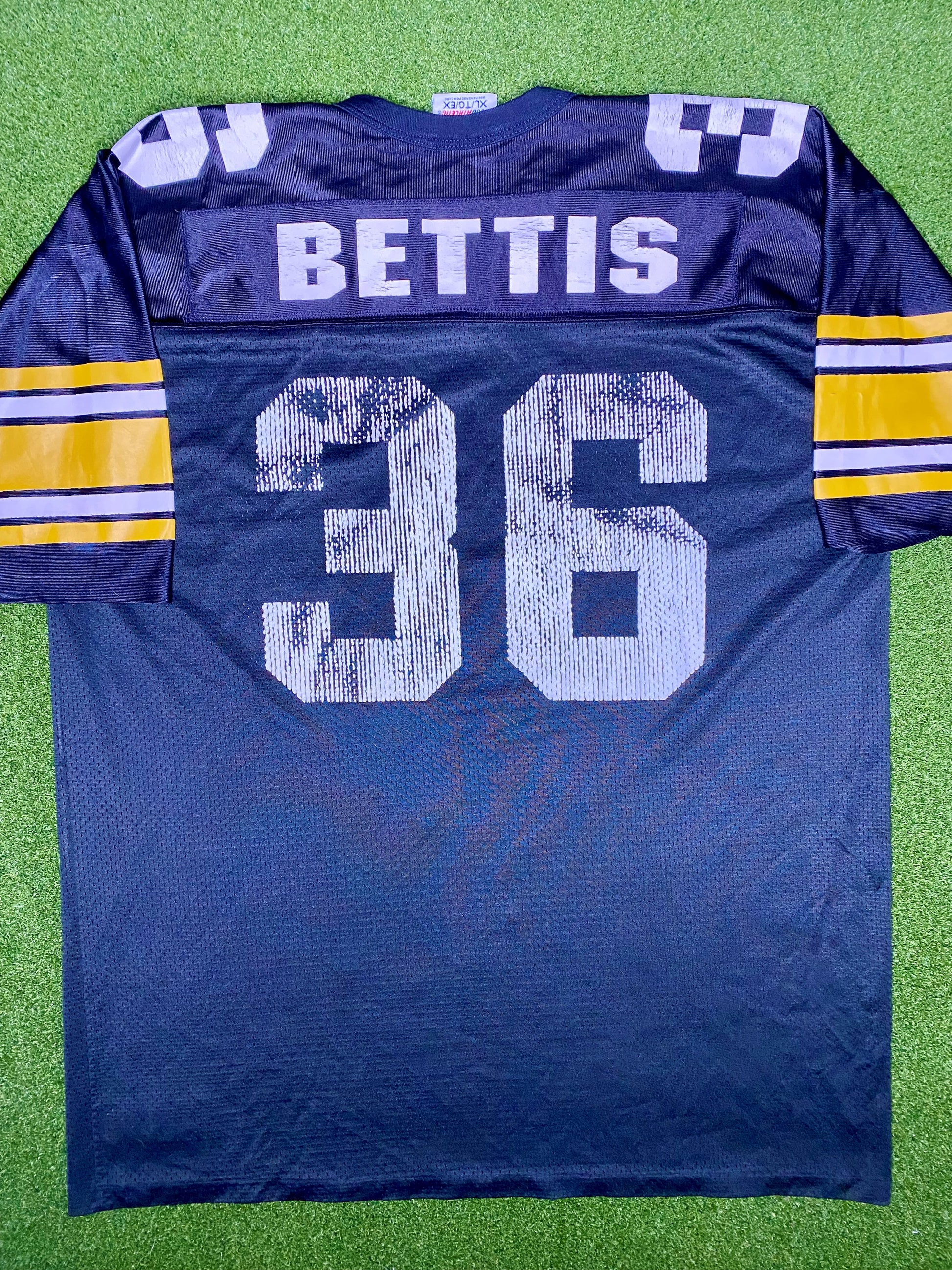The jersey features meticulous attention to detail, with stitched letters and numbers that mirror the style worn during the height of Bettis's career. The classic black and gold color scheme, synonymous with the Pittsburgh Steelers, is bold and eye-catching, making it a standout piece in any fan's collection. The iconic Steelers logo is proudly displayed on the sleeves, showcasing your loyalty to the team and its storied legacy.