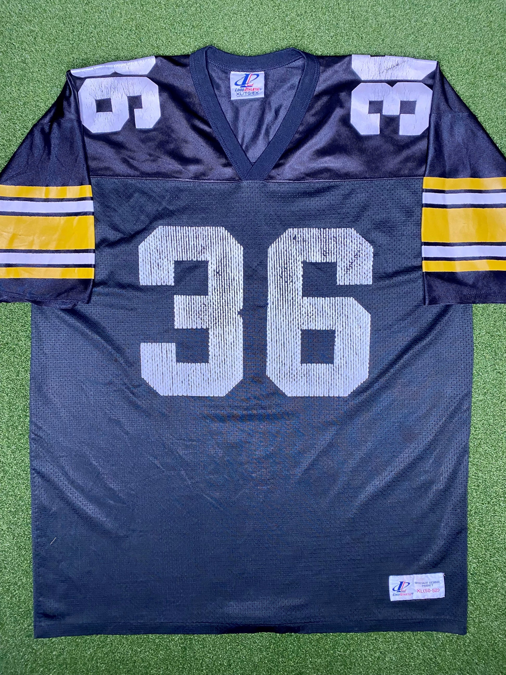 Step onto the field of nostalgia with our exclusive 1996-2001 Pittsburgh Steelers - Jerome Bettis #36 - Vintage NFL Jersey in size XL. This jersey is a true tribute to one of the most iconic running backs in NFL history, Jerome "The Bus" Bettis. Known for his powerful running style and larger-than-life personality, Bettis left an indelible mark on the Pittsburgh Steelers and the league as a whole.