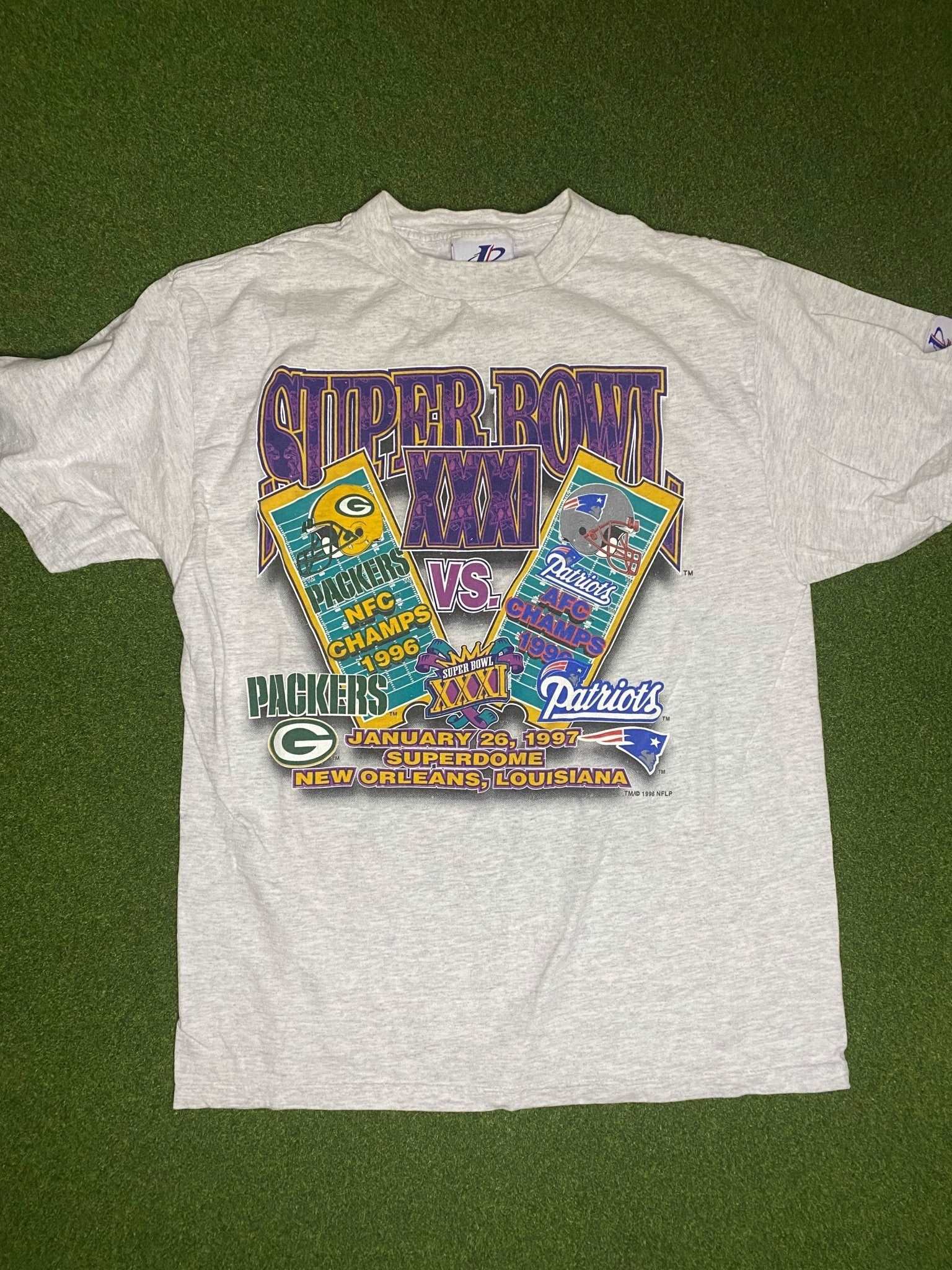 1996 Super Bowl XXXI - Patriots vs Packers - Vintage NFL Tee Shirt (Medium)