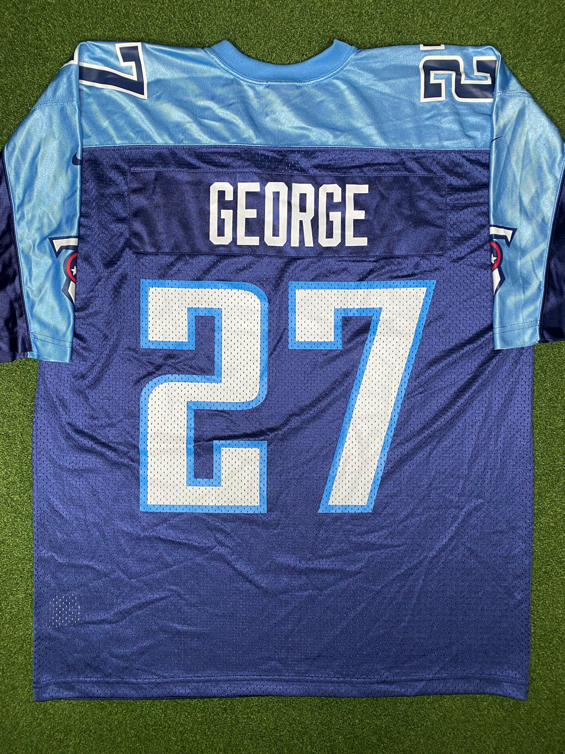 Step back in time and celebrate the rich history of NFL football with this exceptional vintage piece: the 1997-2001 Tennessee Titans - Eddie George #27 - Champion - Vintage NFL Jersey in size XL. This jersey is not just a garment; it's a piece of sports history that pays homage to one of the most iconic running backs of his era, Eddie George.