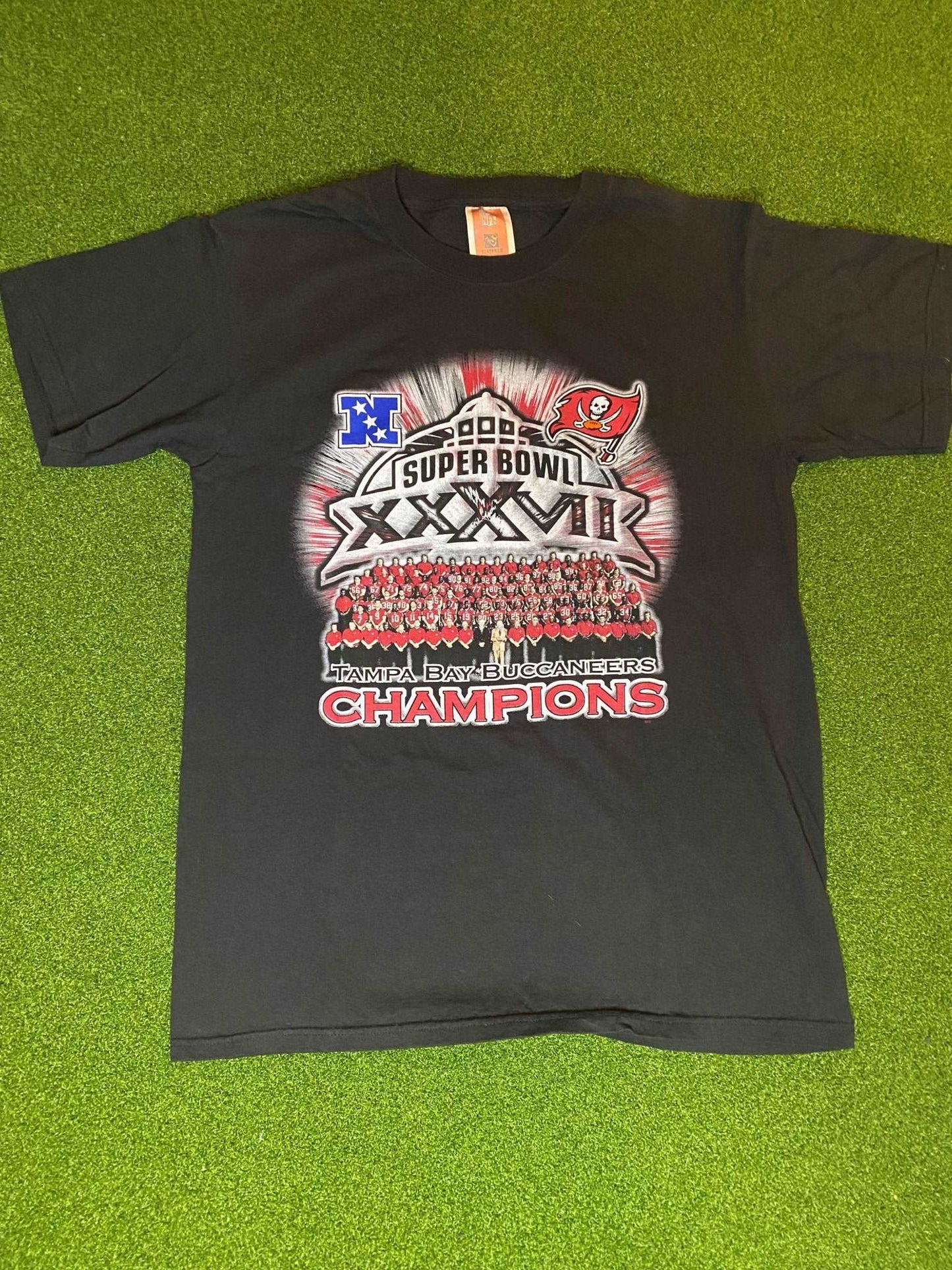 2003 Tampa Bay Buccaneers - Super Bowl XXXVII Champ - Double Sided Vintage NFL Tee Shirt (Medium)