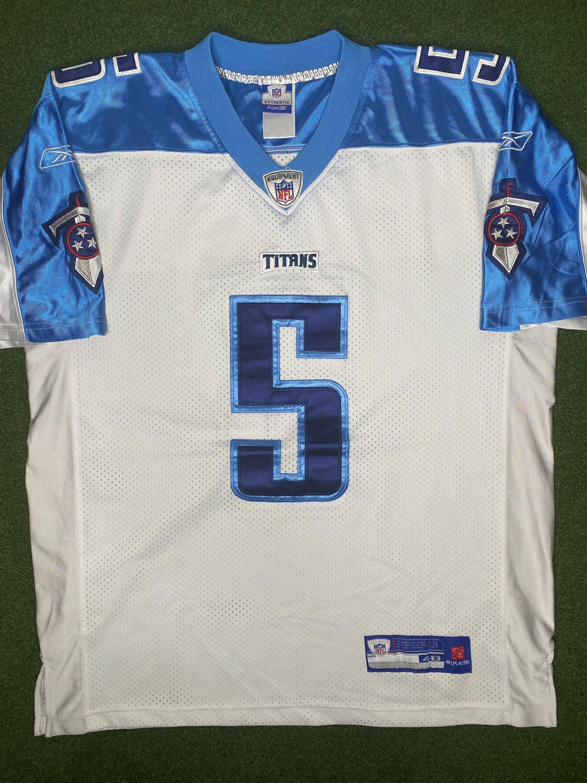 Introducing the 2006-2010 Tennessee Titans - Kerry Collins #5 - Authentic Stitched - Vintage NFL Jersey (48). Celebrate your love for the game and pay homage to one of the most iconic quarterbacks in Tennessee Titans history with this remarkable jersey. Designed for both authenticity and style, this vintage jersey is a must-have for any true fan looking to display their support for the Titans and their favorite player, Kerry Collins.