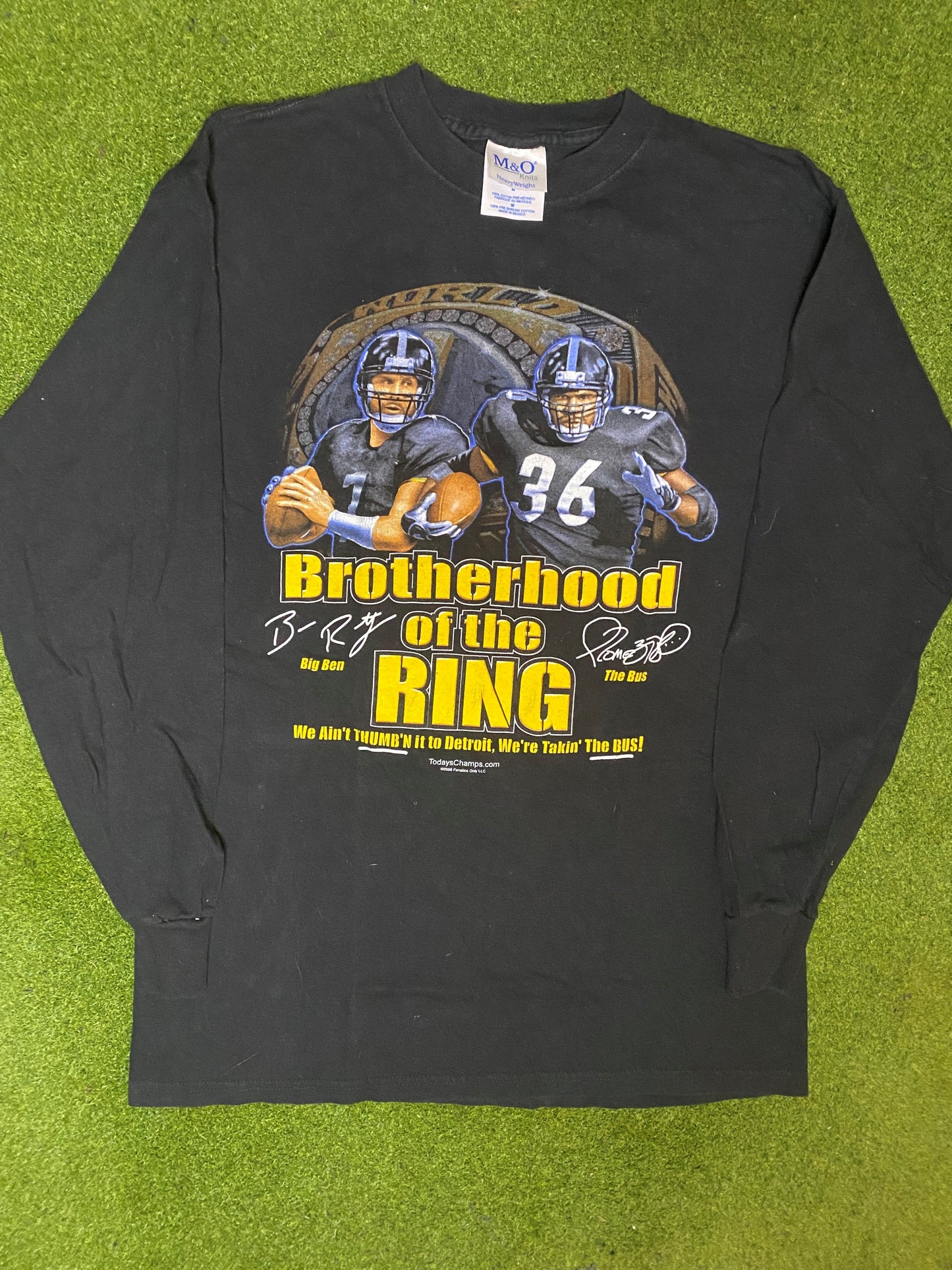 2006 Pittsburgh Steelers - Brotherhood of the Ring Ft. Big Ben and The Bus - Vintage NFL Player Long Sleeve (Medium)