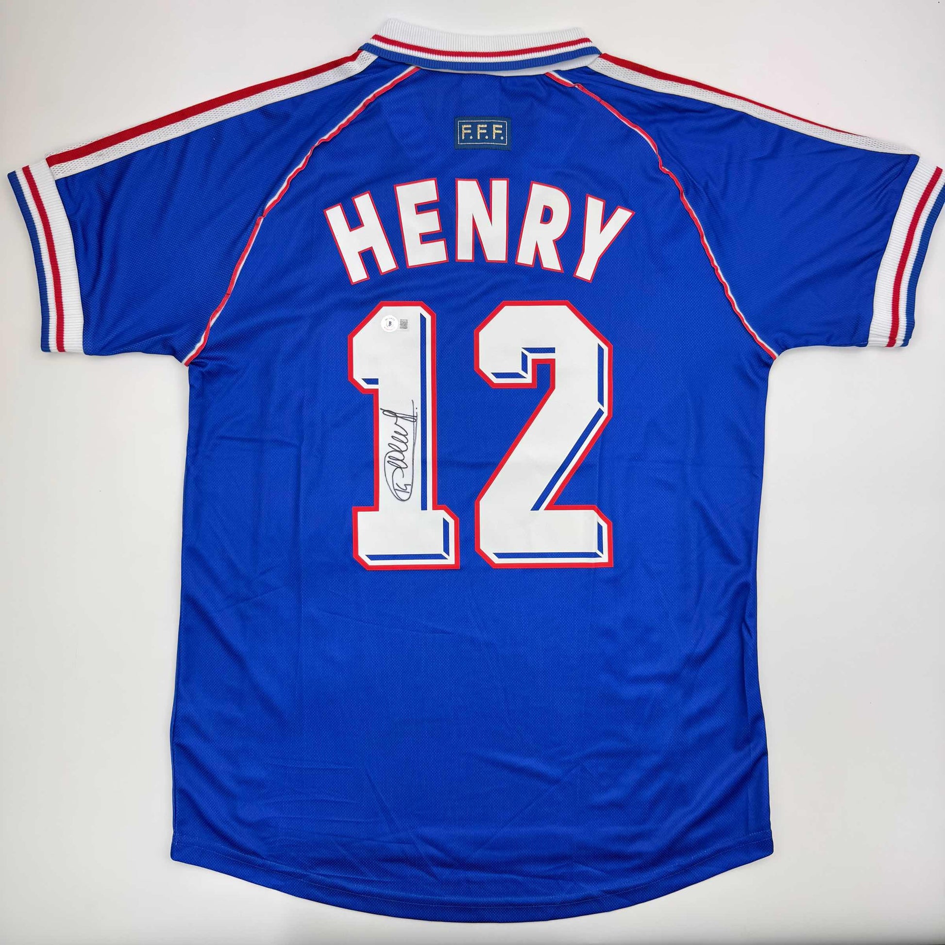 Autographed/Signed Thierry Henry France French National Team Blue Soccer Jersey Beckett BAS COA