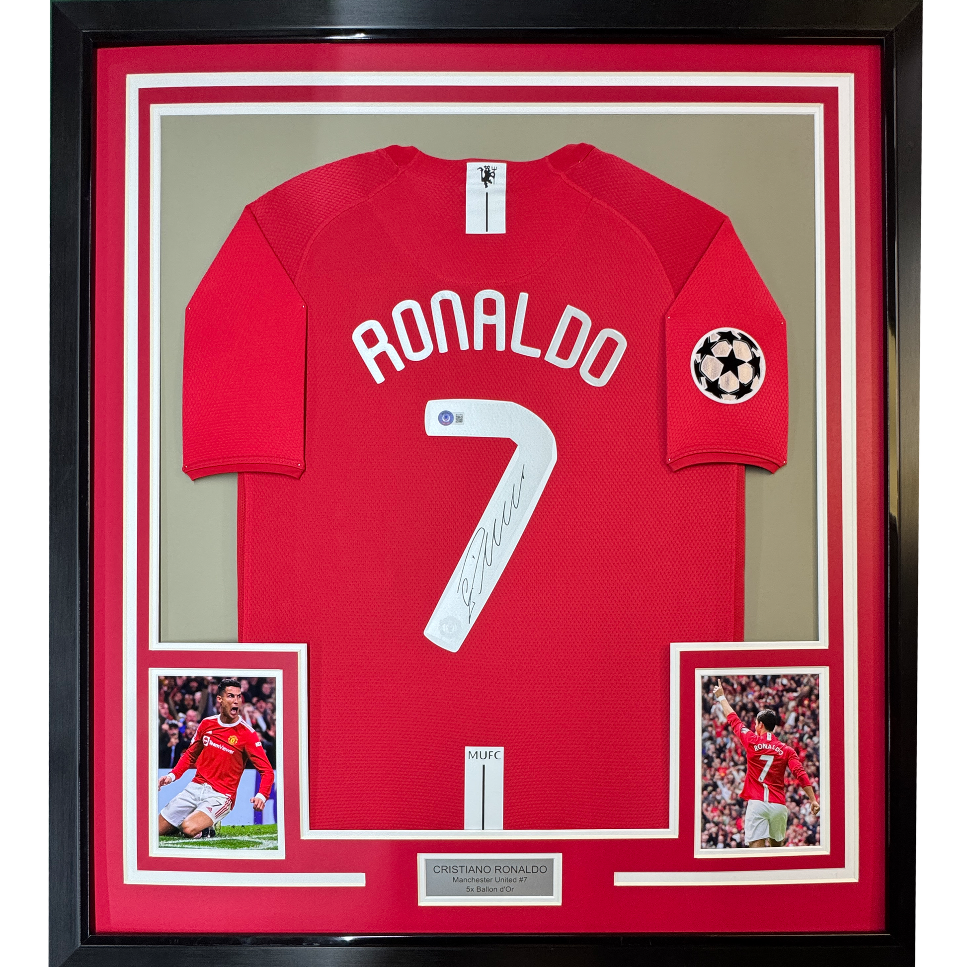 Framed Autographed/Signed Cristiano Ronaldo 35x39 Manchester United Red Soccer Jersey Beckett BAS COA