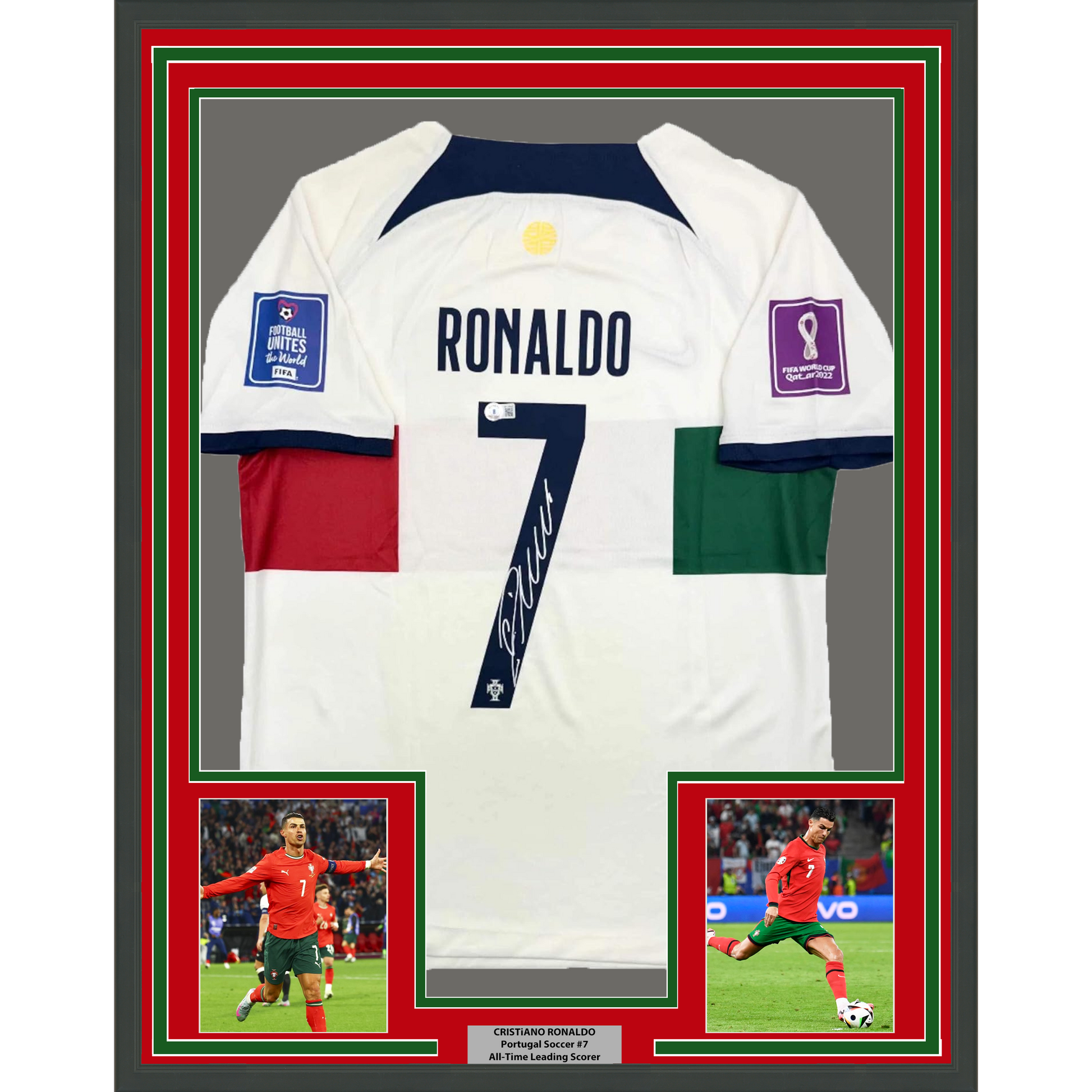 Framed Autographed/Signed Cristiano Ronaldo 35x39 Portugal World Cup Soccer Futbol Jersey Beckett BAS COA