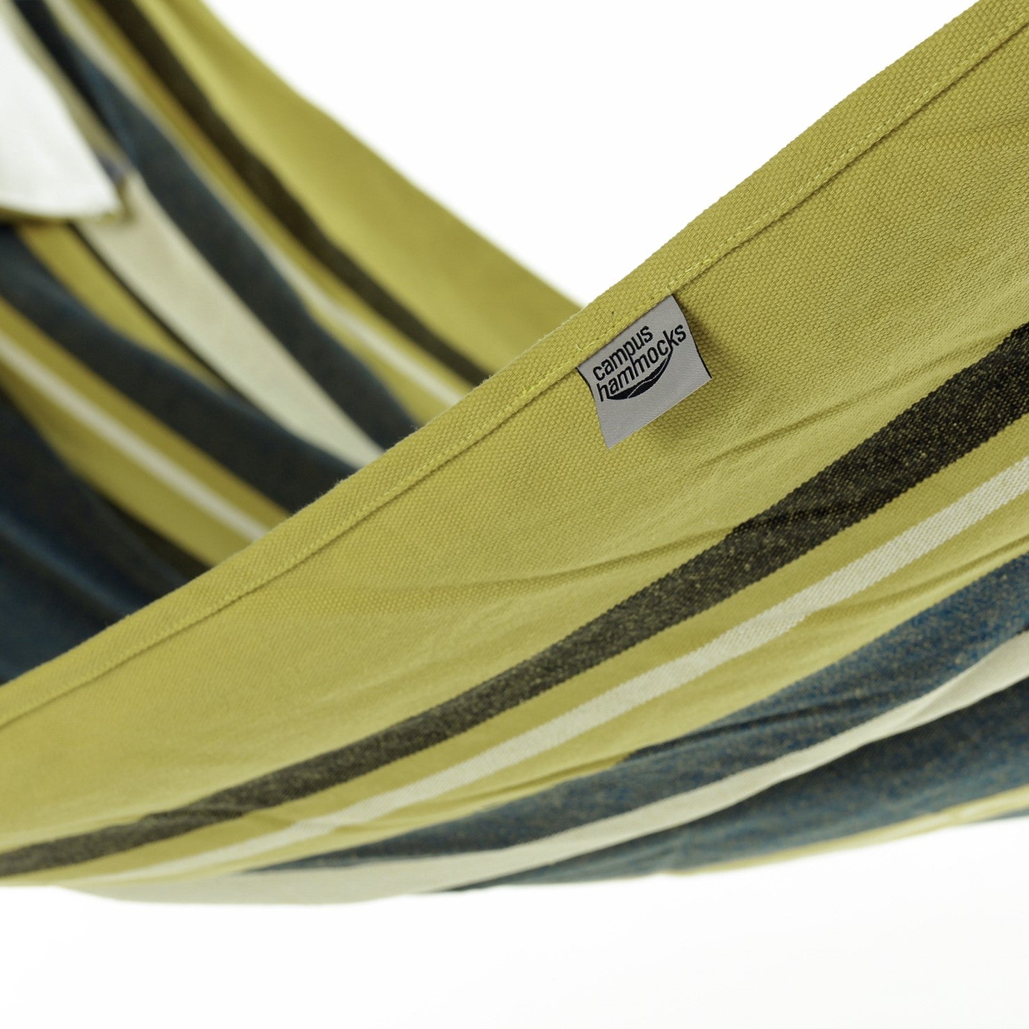 Handmade from 100% soft woven cotton, this hammock is roomy and enjoyable. Reinforced edges make the fabric extremely tear-resistant. Solid wood spreader bars keep this hammock open and ready for use. They ensure optimal weight distribution and incredible comfort.