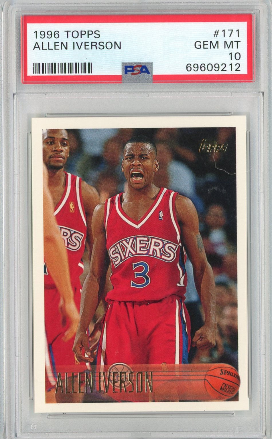 Graded 1996 Topps Allen Iverson #171 Rookie RC Basketball Card PSA 10 Gem Mint