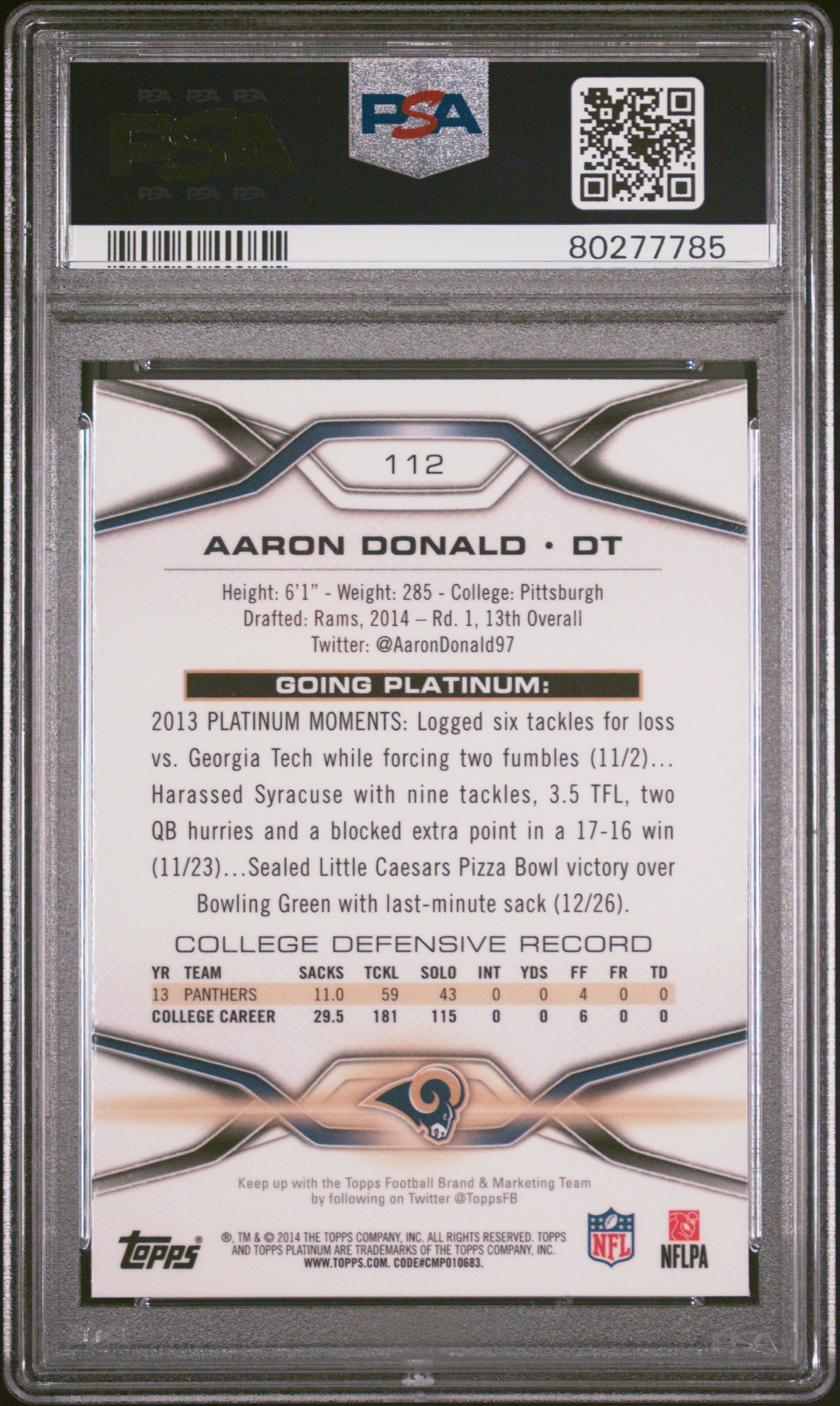 Graded 2014 Topps Platinum Aaron Donald #112 Xfractor Rookie RC Football Card PSA 9 Mint