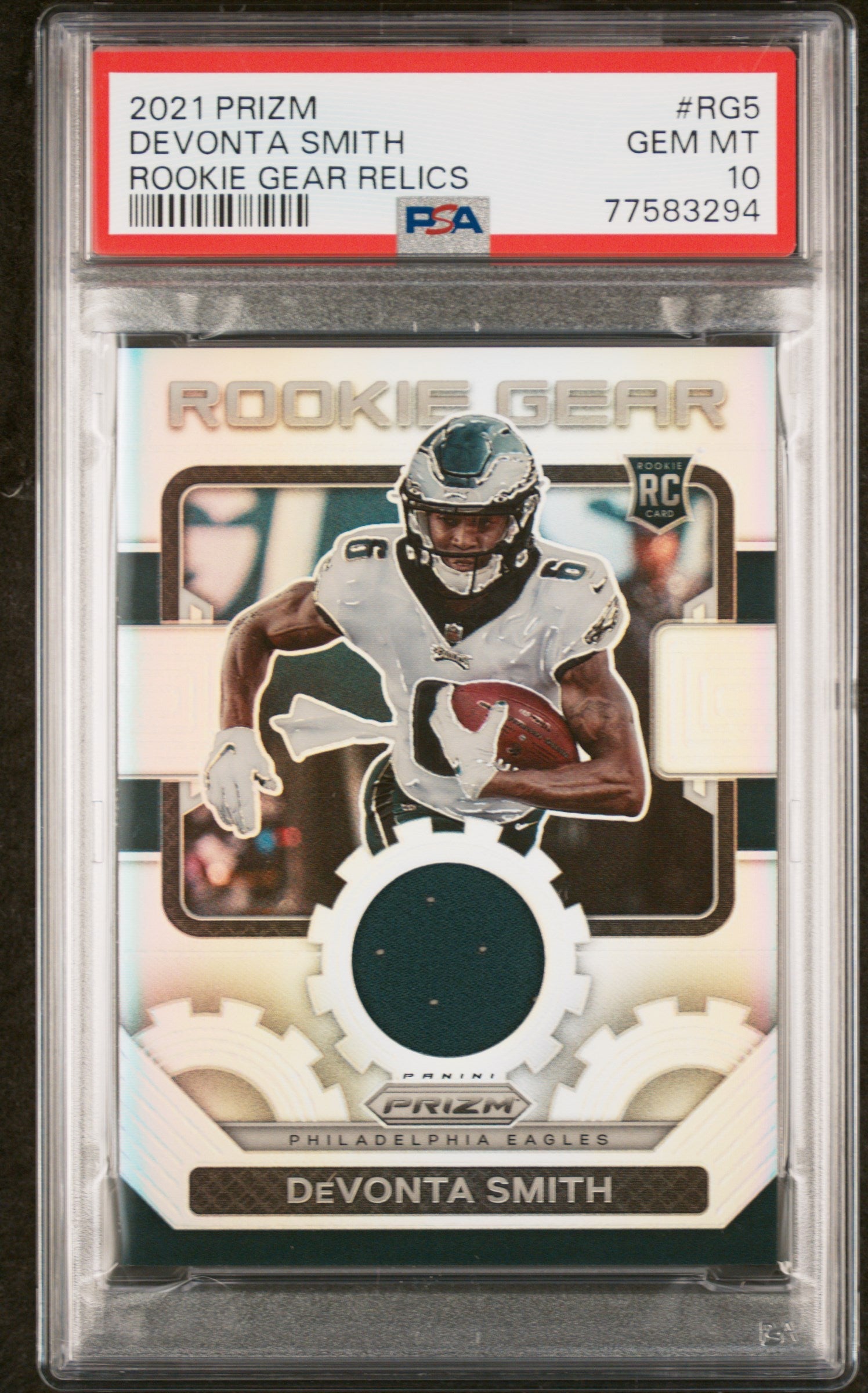 Graded 2021 Panini Prizm DeVonta Smith #RG5 Rookie Gear Relics Rookie RC Football Card PSA 10 Gem Mint