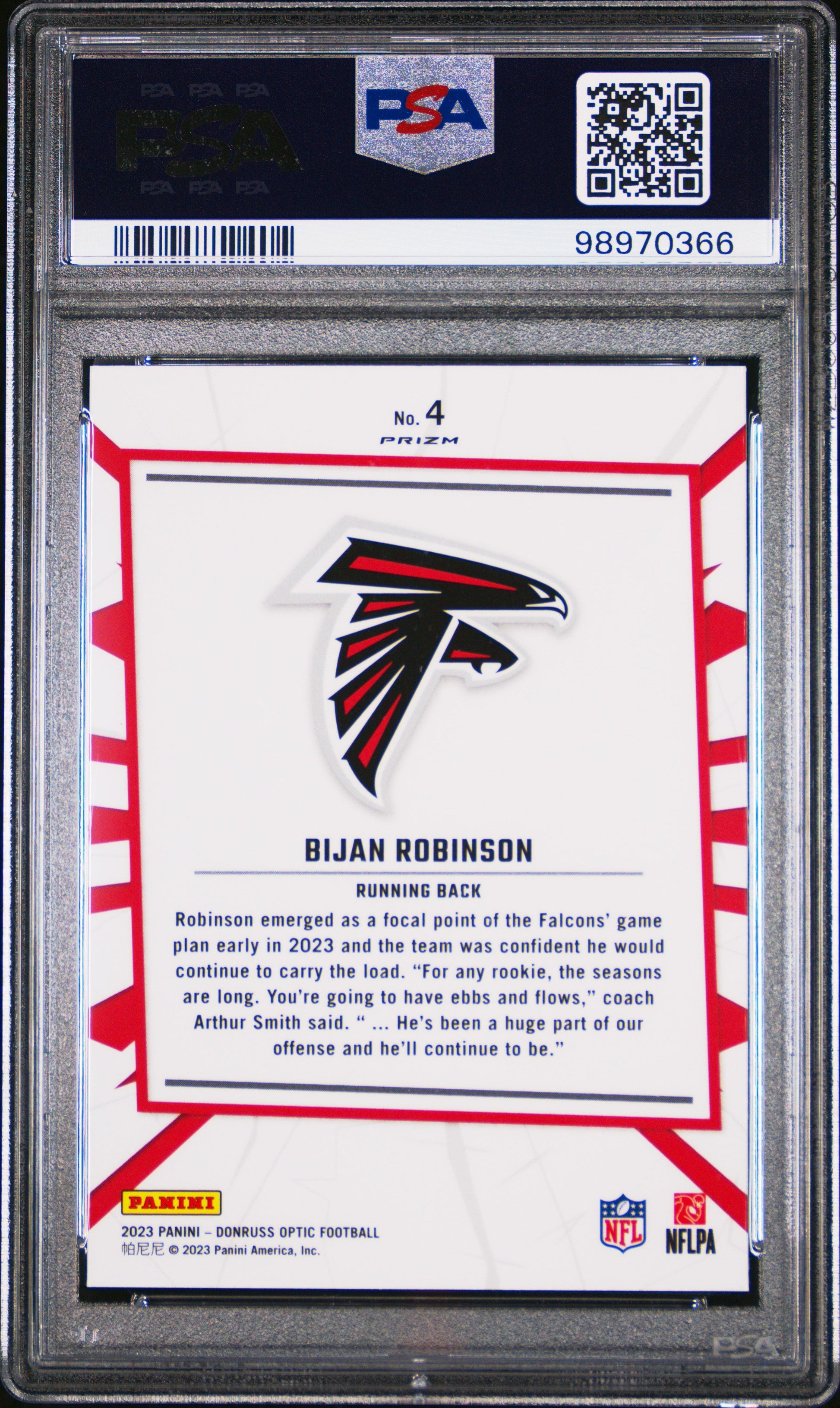 Graded 2023 Panini Donruss Optic Bijan Robinson #4 My House Rookie RC Football Card PSA 10 Gem Mint