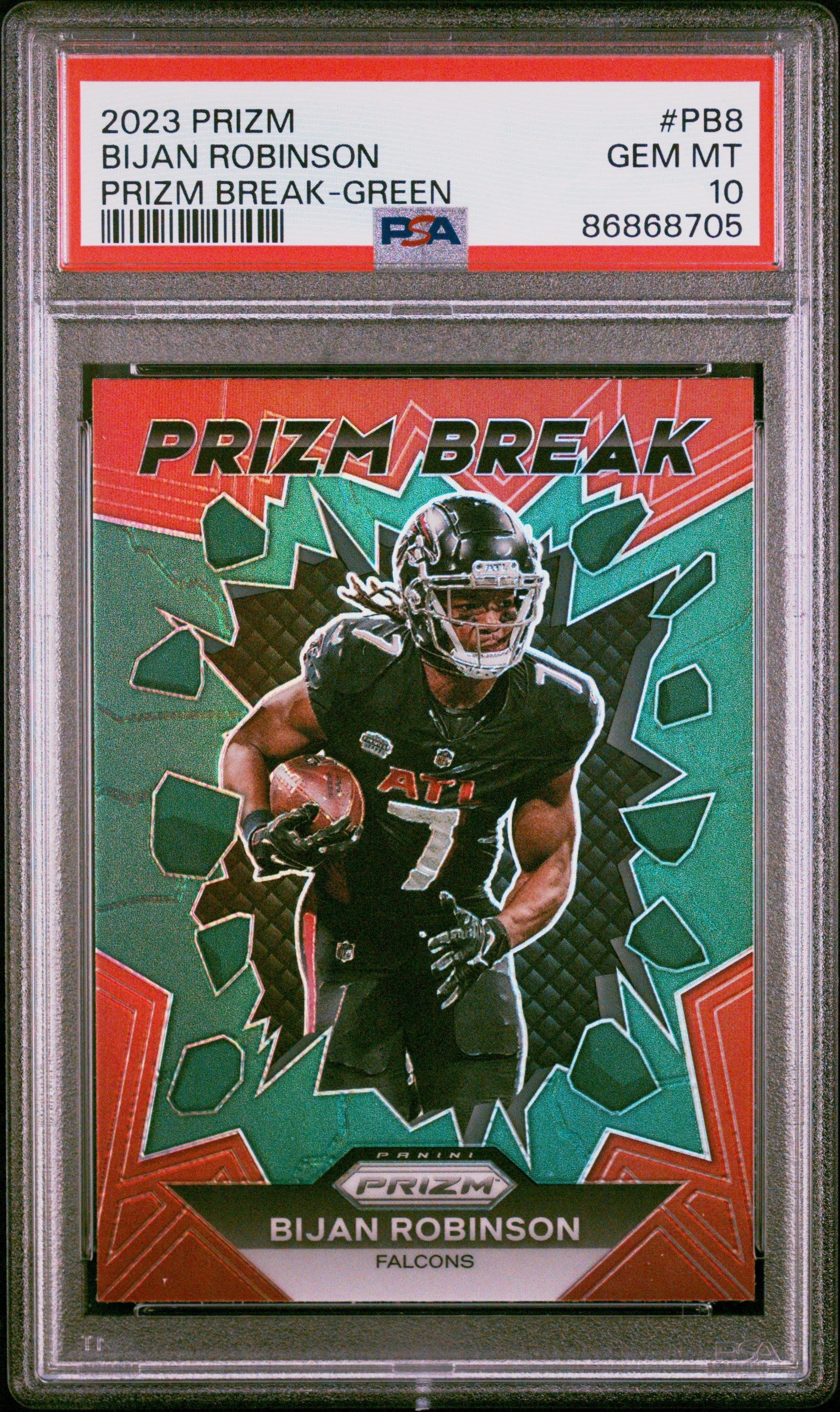 Graded 2023 Panini Prizm Bijan Robinson #PB8 Prizm Break Green Rookie RC Football Card PSA 10 Gem Mint