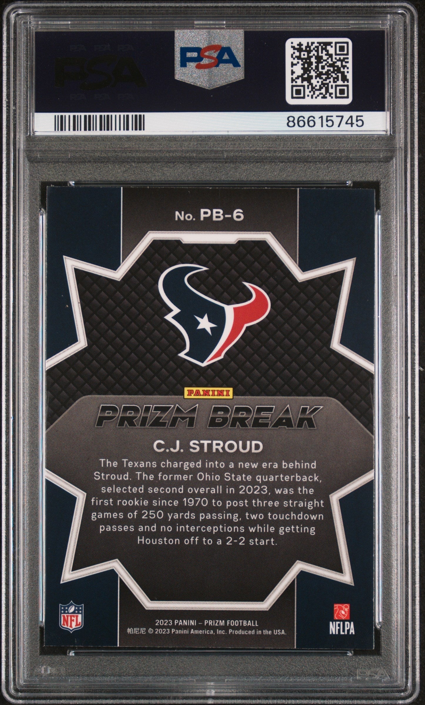 Graded 2023 Panini Prizm CJ Stroud #PB6 Prizm Break Rookie RC Football Card PSA 10 Gem Mint