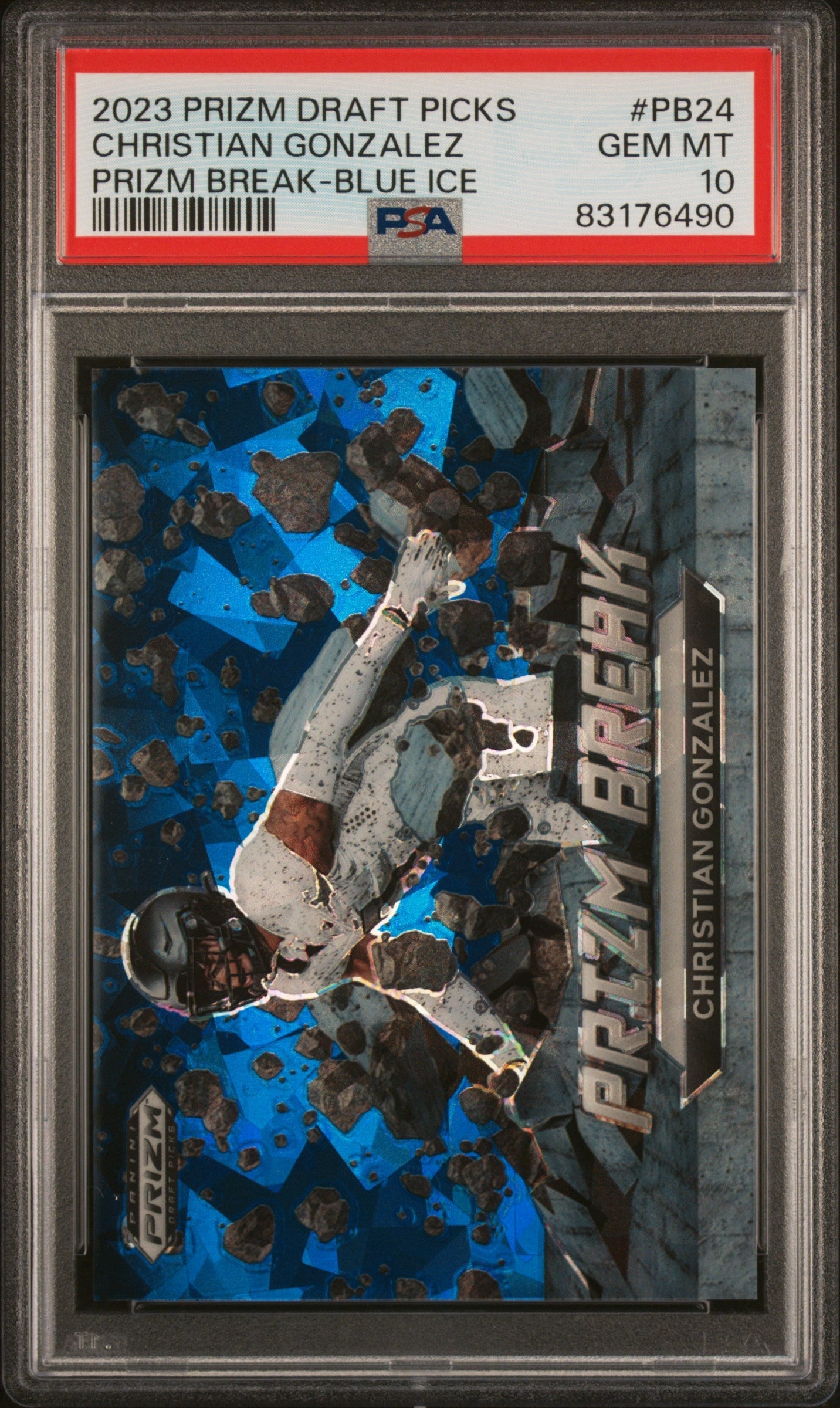 Graded 2023 Panini Prizm Draft Picks Christian Gonzalez #PB24 Prizm Break Blue Ice #/99 Rookie RC Football Card PSA 10 Gem Mint