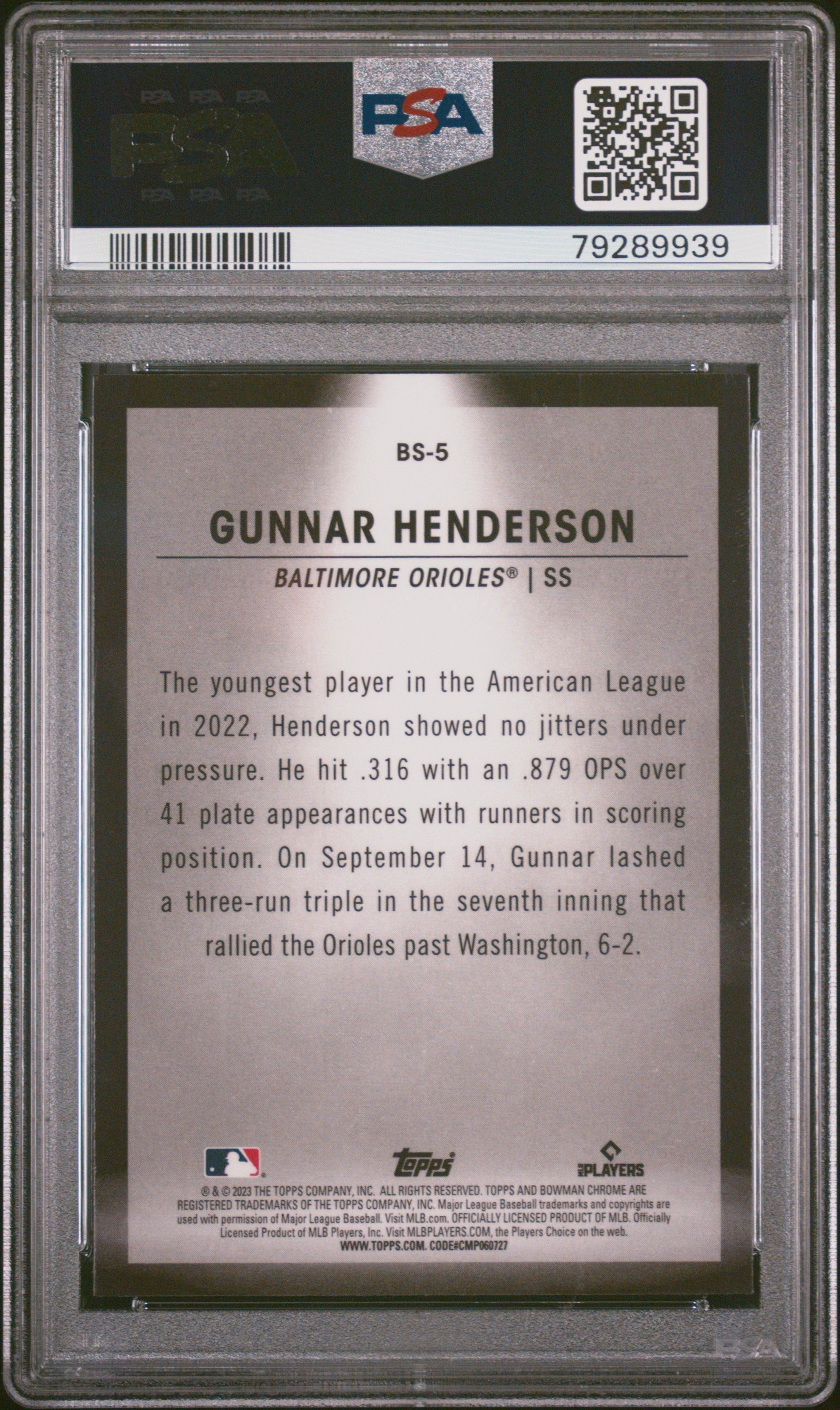 Graded 2023 Topps Bowman Gunnar Henderson #BS5 Spotlights Rookie RC Baseball Card PSA 10 Gem Mint