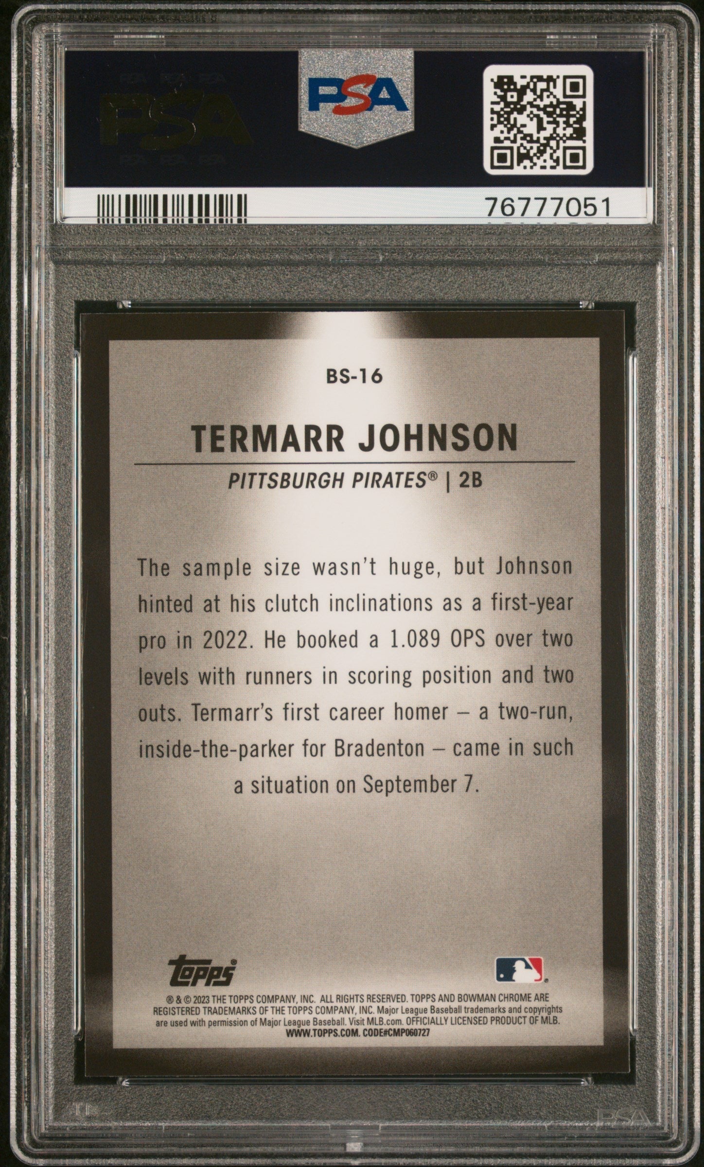 Graded 2023 Topps Bowman Termarr Johnson #BS16 Spotlights Rookie RC Baseball Card PSA 10 Gem Mint