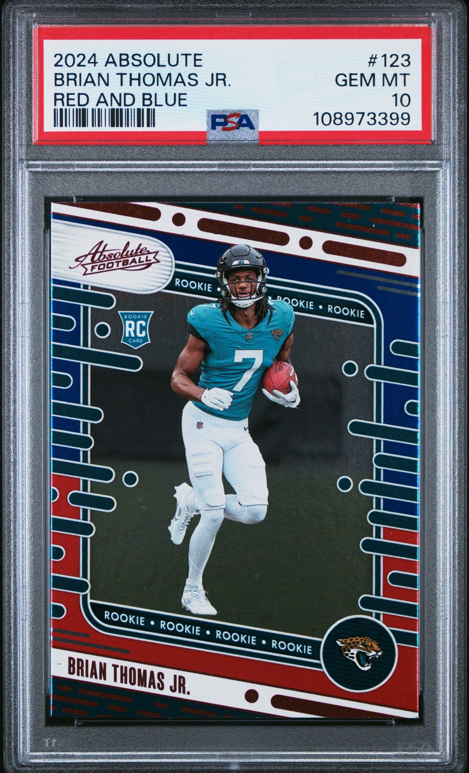 Graded 2024 Panini Absolute Brian Thomas Jr #123 Red/Blue Rookie RC Football Card PSA 10 Gem Mint