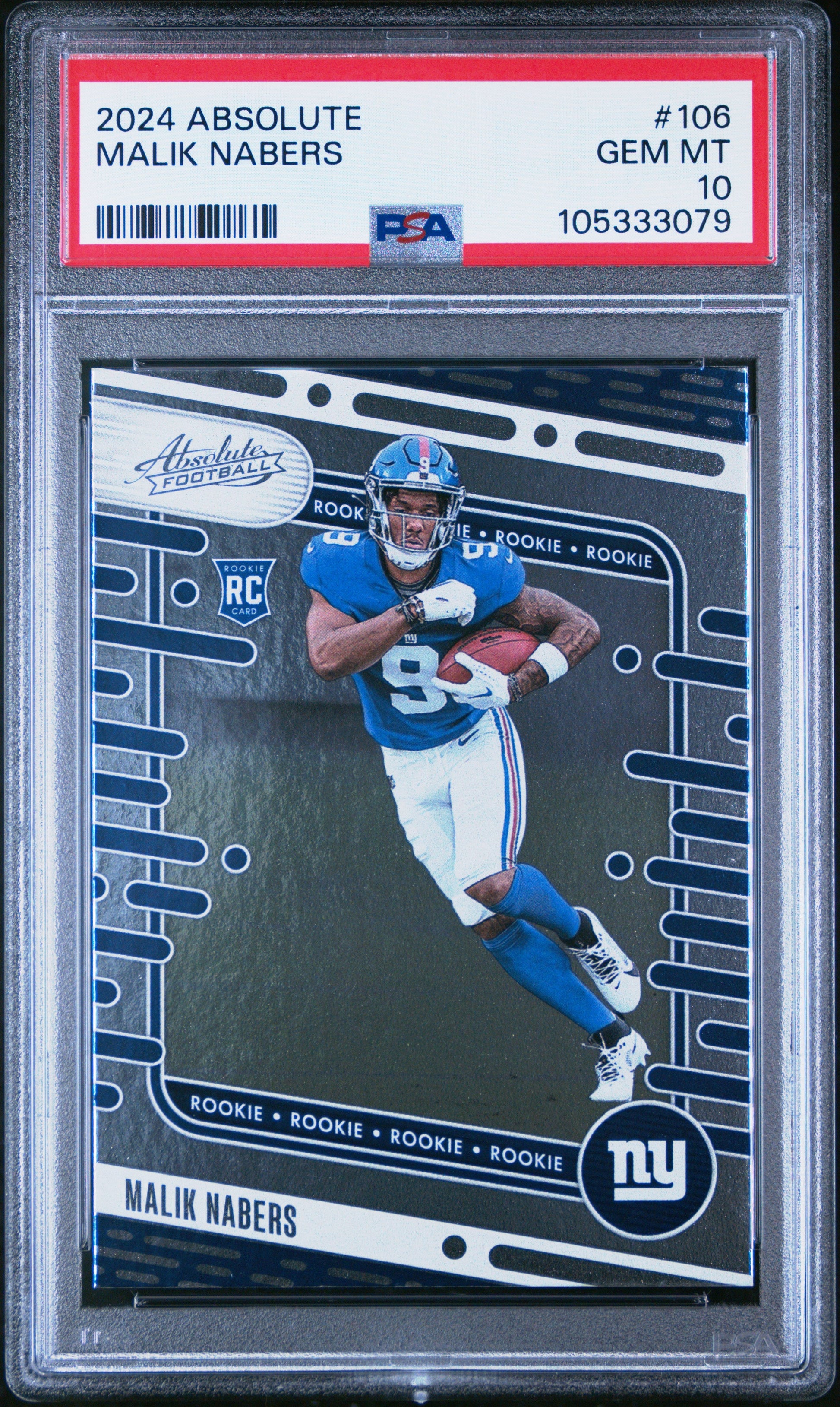 Graded 2024 Panini Absolute Malik Nabers #106 Rookie RC Football Card PSA 10 Gem Mint