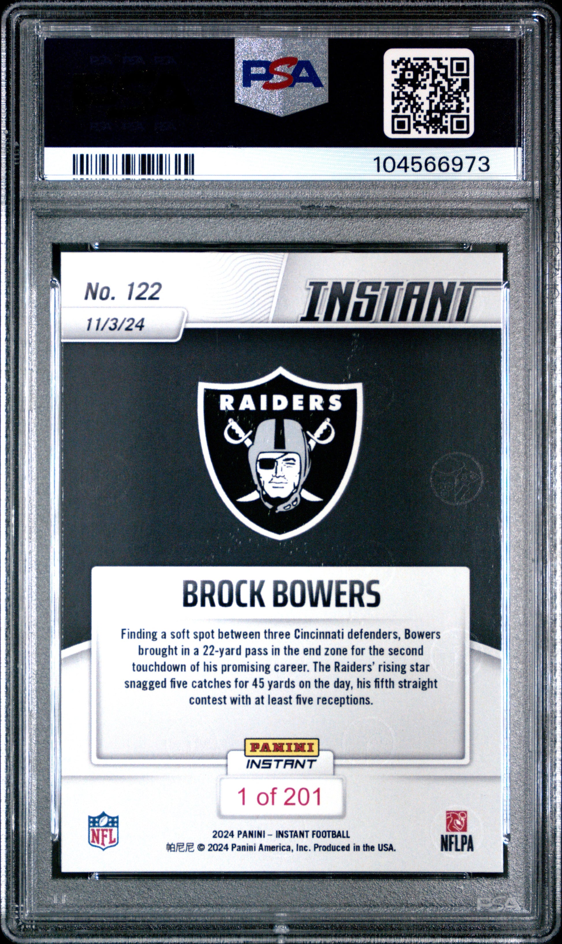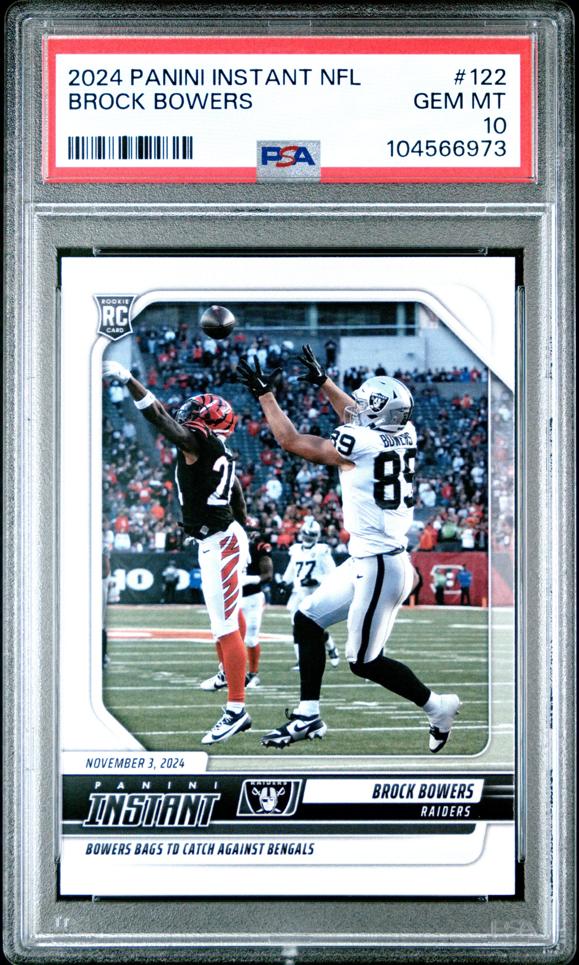 Graded 2024 Panini Instant NFL Brock Bowers #122 Rookie RC Football Card PSA 10 Gem Mint