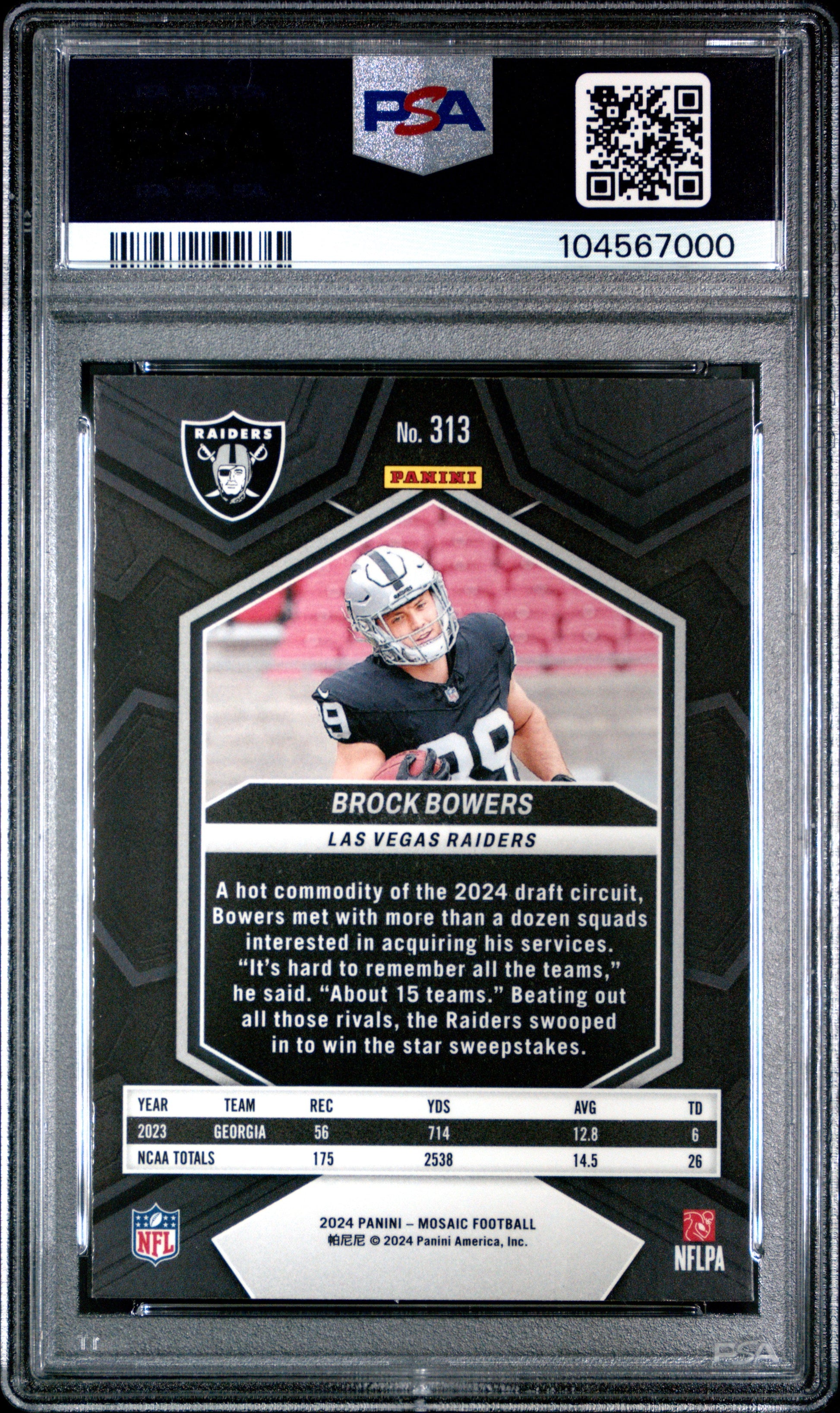 Graded 2024 Panini Mosaic Brock Bowers #313 Rookie RC Football Card PSA 10 Gem Mint