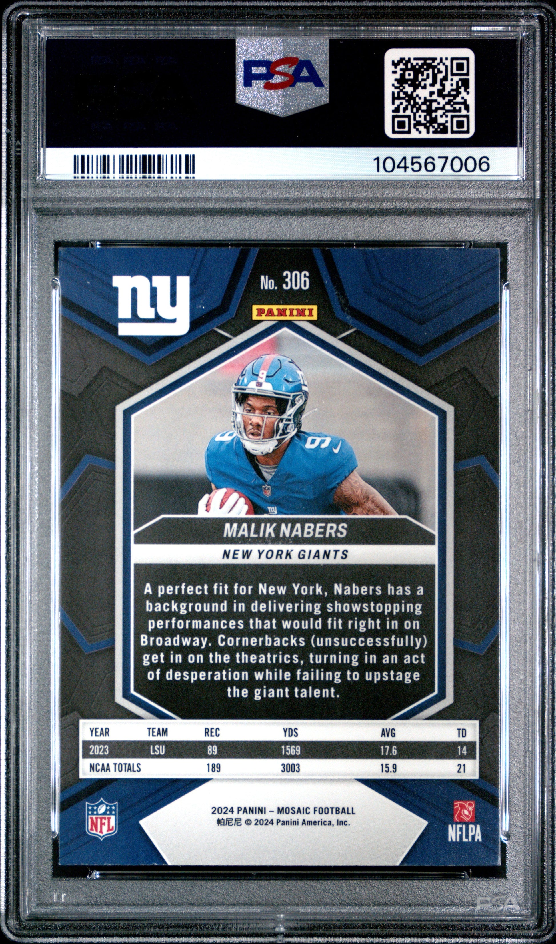 Graded 2024 Panini Mosaic Malik Nabers #306 Rookie RC Football Card PSA 9 Mint