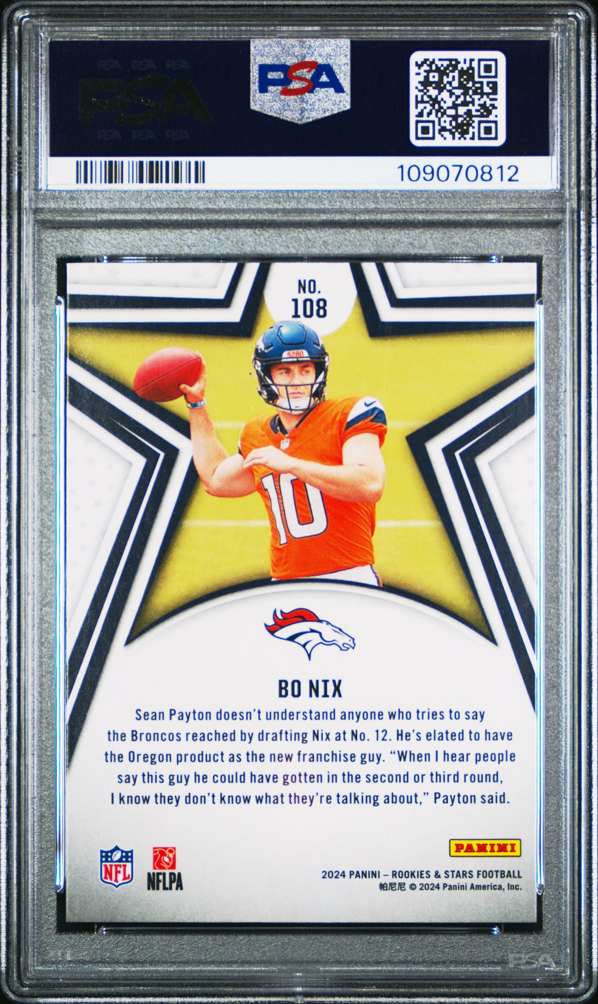 Graded 2024 Panini Rookies & Stars Bo Nix #108 Longevity RC Football Card PSA 10 Gem Mint