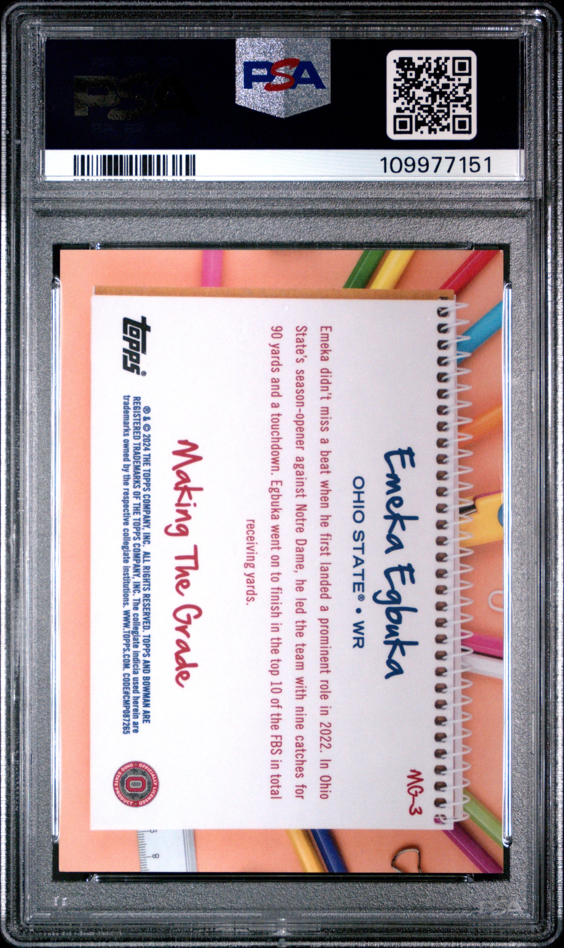 Graded 2024 Topps Bowman Best University Emeka Egbuka #MG3 Making the Grade Rookie RC Football Card PSA 10 Gem Mint