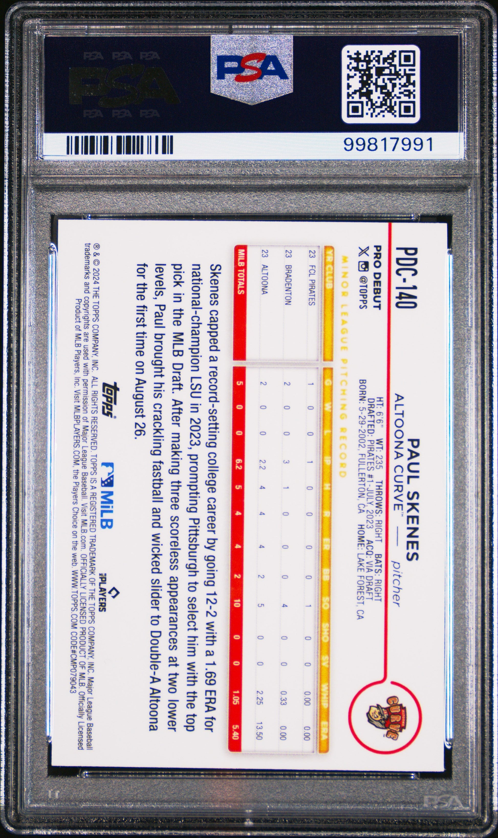Graded 2024 Topps Pro Debut Paul Skenes #PDC140 Chrome Rookie RC Baseball Card PSA 10 Gem Mint